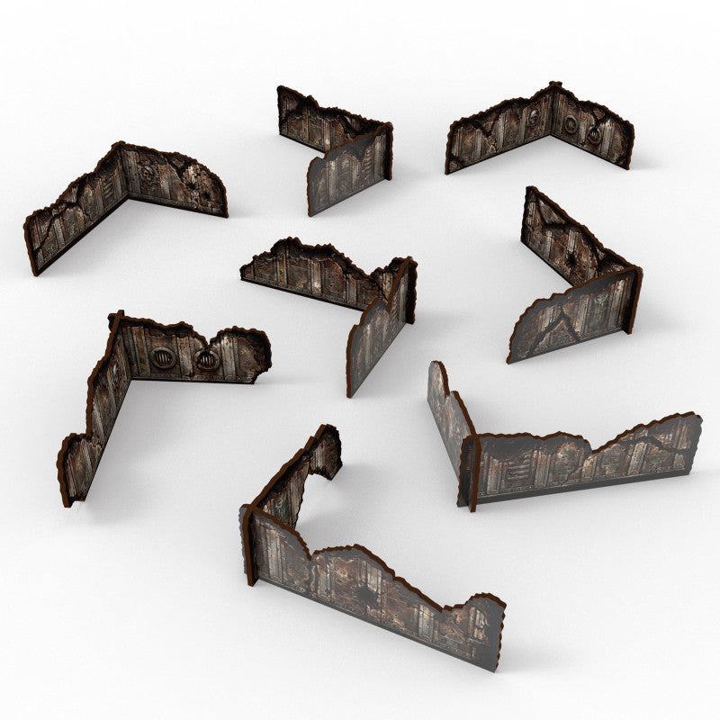 Set de muros bajos en forma de L de temática de ciencia ficción están diseñados para ser totalmente compatibles con las mesas competitivas de Warhammer 40,000 (Matched Play) y los rápidos tiroteos multitud de wargames de 28-32 mm. Prepintados y listos para jugar, añaden cobertura instantánea al tiempo que mantienen líneas de fuego despejadas y permiten moverse con libertad alrededor de los objetivos.